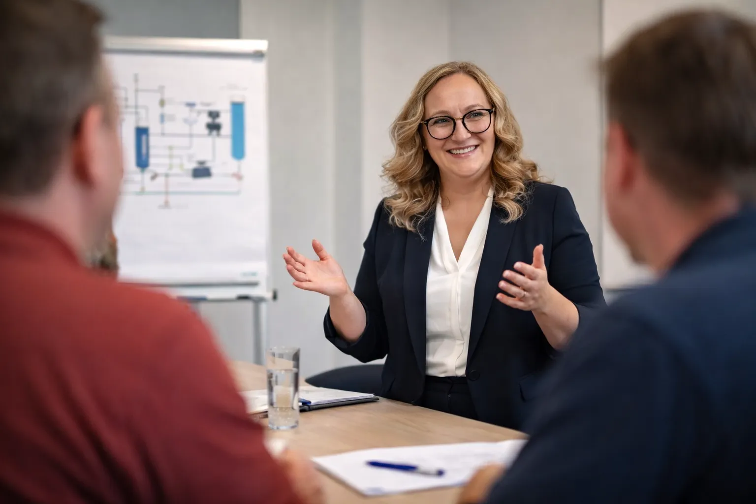 Unsere Expertinnen und Experten verbinden Chemie und Technik zu praxisnahen Lösungen. Sie vermitteln ihr Wissen in Schulungen, beraten bei komplexen Fragestellungen und begleiten Sie persönlich – vom Angebot bis zum Anschluss.